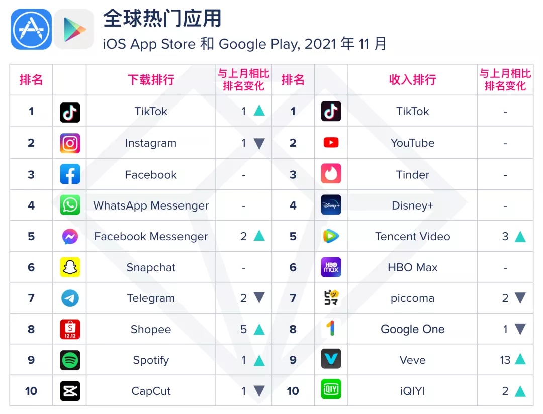 App Annie 发布了 2021 年 11 月月度指数排行榜,以下是具体内容: