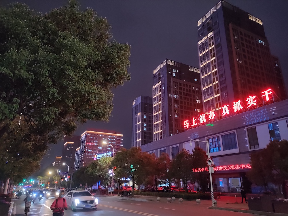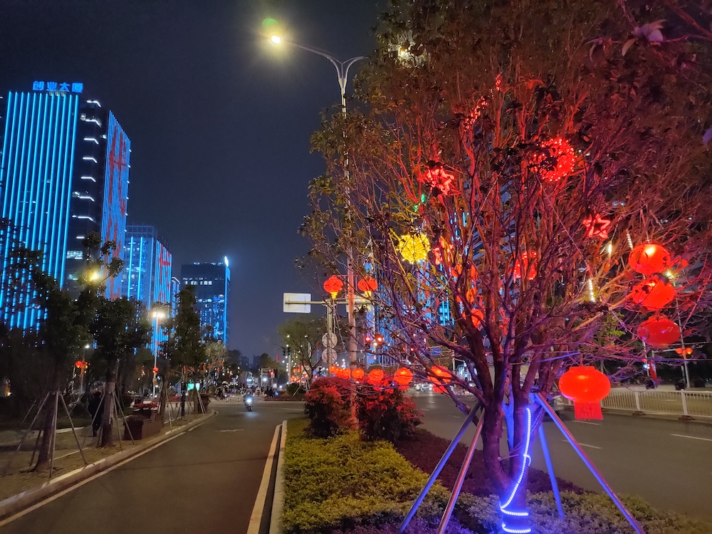 从实拍作用来看,夜间的成像质量仍是很高的。在夜间极低的光线环境下,能够捕捉到明晰的建筑物概括。关于一些杂乱的荧光和霓虹灯的体现,烘托的比较到位,夜景形式下能够取得不错的成片质量。关于暗夜环境下的静物拍照,也能够比较好的定焦和体现细节。在专业拍照情况下,还能够手动对焦近处和远处的不同景象,取得不一样的虚化作用,得到必定的场景创造愉悦感。